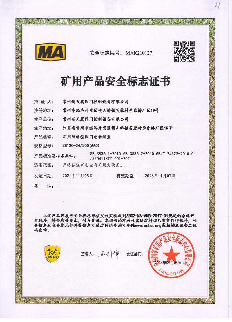 礦用產品安全標志證書ZB30-24 200(660)